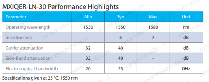 iXblueMXIQER-LN-30是一款高帶寬,低插損,高抑制比的雙平行M-Z調制器,iXblue 專利技術“Magic Junction” (patent n° US2008193077)保證高達30dB以上的載波和邊帶抑制比。