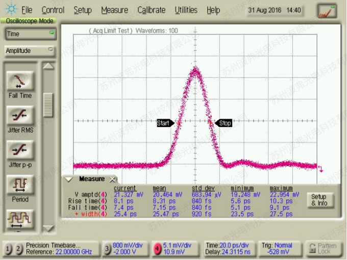 20GHz脈沖驅(qū)動,~5.2Vpp輸出 |