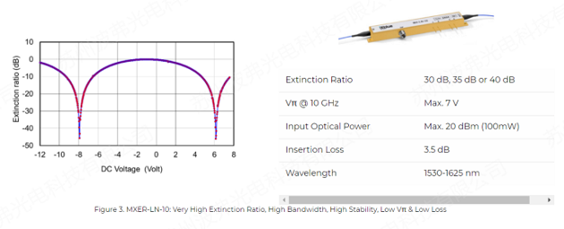 泵浦脈沖的消光比直接影響整個BOTDA測量系統(tǒng)的信噪比。因此,高消光比EOM直接影響B(tài)OTDA系統(tǒng)的最大測量范圍和測量速度。MXER-LN系列強(qiáng)度調(diào)制器是高性能調(diào)制器,具有優(yōu)越的消光比。該產(chǎn)品的設(shè)計依賴于iXblue的“Magic Junction”(專利號n° US2008193077)。MXER-LN系列強(qiáng)度調(diào)制器是BOTDA應(yīng)用中需要高消光和高帶寬組合的關(guān)鍵器件。