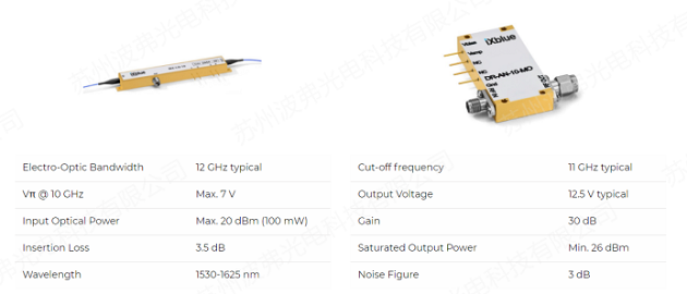 高度通用的MX-LN-10有一個X-cut設(shè)計,廣泛的工作條件,以及零啁啾性能和無與倫比的穩(wěn)定性。iXblue專有的波導(dǎo)設(shè)計提供了低插入損耗和高消光比。MX-LN-10由于具有高帶寬、穩(wěn)定性好和低插入損耗,非常適合用于BOTDA系統(tǒng)的DSB-SC。DR-AN-10-HO是一種寬帶射頻放大器模塊,設(shè)計用于頻率高達(dá)11GHz的模擬應(yīng)用。DR-AN-10-HO具有低噪聲系數(shù)和線性傳遞函數(shù)的特點(diǎn),其1dB壓縮點(diǎn)大于23dBm。它在整個帶寬上表現(xiàn)出平坦的群延遲和增益曲線,波動很小,該放大器模塊非常適合匹配MX-LN-10做DSB-SC應(yīng)用。 利用MBC-DG-LAB和MBC-DG-board可以鎖定馬赫-曾德爾調(diào)制器的工作點(diǎn),保證了對偏置漂移的長期穩(wěn)定性。