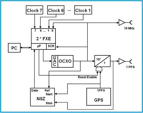 接收的時(shí)間信號(hào)由基于OCXO(或銣振蕩器)的附加控制電路穩(wěn)定。以這種方式,可以產(chǎn)生頻率參考輸出信號(hào),該信號(hào)對(duì)于短期和長(zhǎng)期測(cè)量來說非常穩(wěn)定。