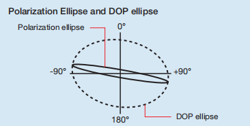 在這種情況下,DOP橢圓表示用于光纖對準E,其中模擬了使用旋轉(zhuǎn)線性偏振器的偏振測量。DOP橢圓(虛線)變成一個圓,表示完全去偏(消偏)的光。