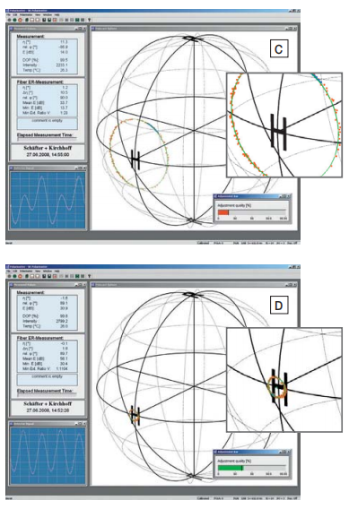 彩色編碼的對數(shù)條形圖有助于找到最小距離。然后,第二次測量顯示了光纖最佳偏振對準的參數(shù)。