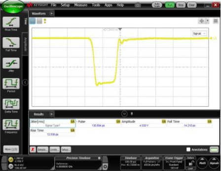 使用觸發輸入端口,EPG-LAB-30ps可從外部觸發單脈沖生成,最大工作脈沖重復頻率超過3.5GHz。