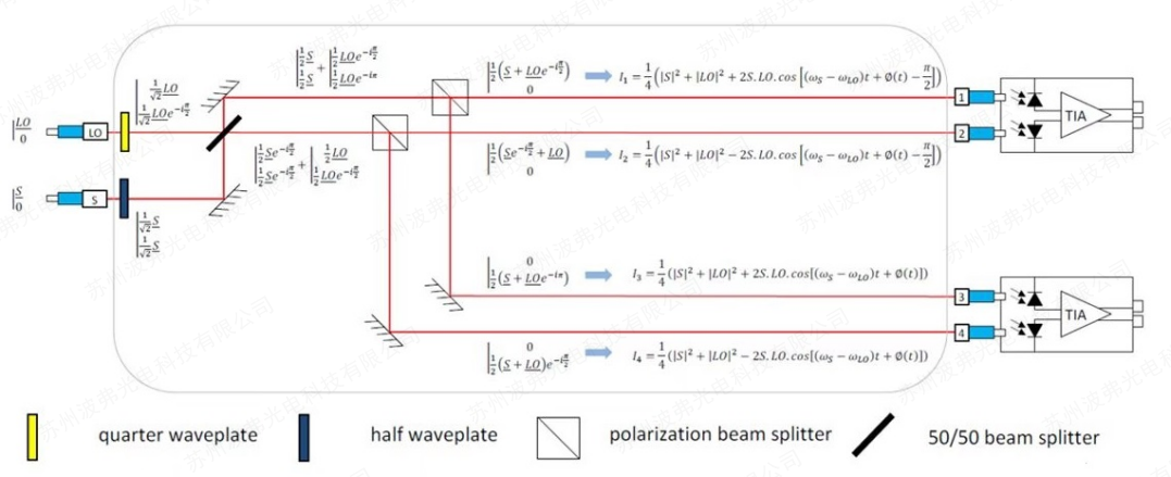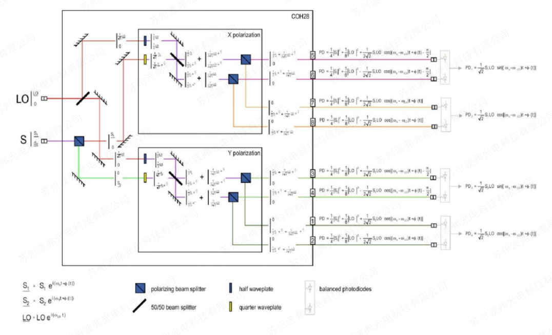 COH28和COH28-X基于兩個(gè)單偏振90°光混頻器,能夠從具有任何偏振的信號中提取相位、幅度和偏振。