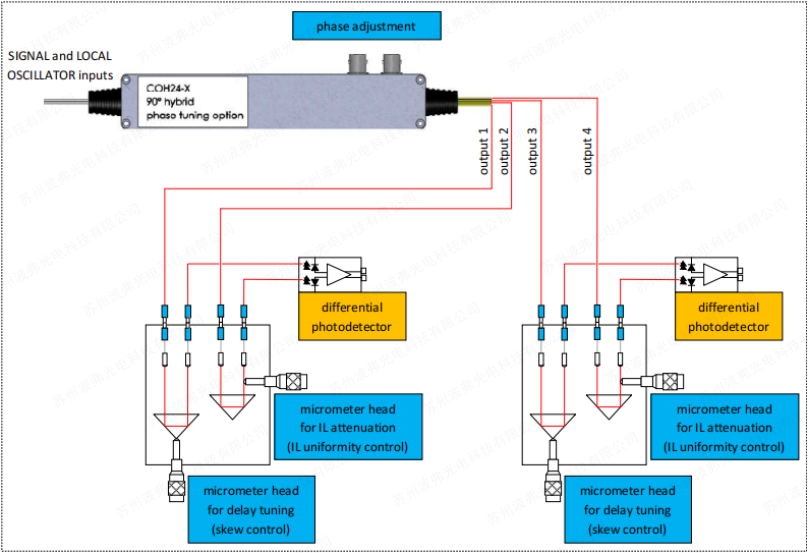 COH24-X和COH28-X還具有相位可調(diào)選項(xiàng),以便根據(jù)使用的波長完美調(diào)整混頻器到90°。