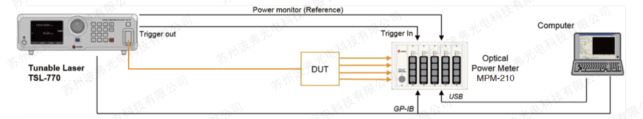 該激光器與Santec的功率計MPM-210和偏振控制器單元PCU-100集成,以創建交鑰匙WDL或PDL測量解決方案。Santec提供用于控制系統的軟件以及動態鏈接庫(DLL),以支持使用各種編程語言進行系統集成和控制。