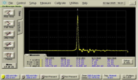 500ps脈寬 @時鐘頻率. 100kHz,輸出電平 4.6Vpp |