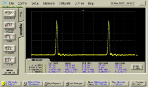 100ps脈寬 @時鐘頻率. 1GHz,輸出電平 5.1Vpp |