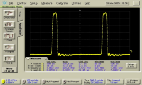 100ps脈寬 @時鐘頻率. 1GHz,輸出電平 6.8Vpp |