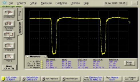 30ps脈寬 @時鐘頻率. 100kHz,輸出電平 5.2Vpp |